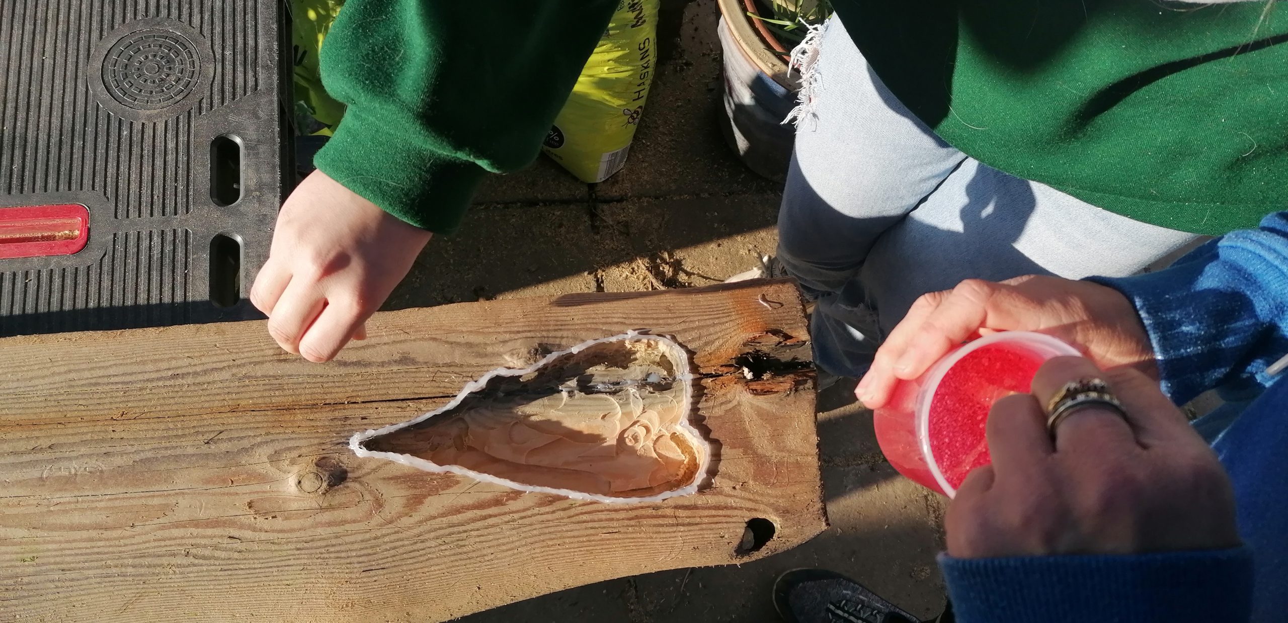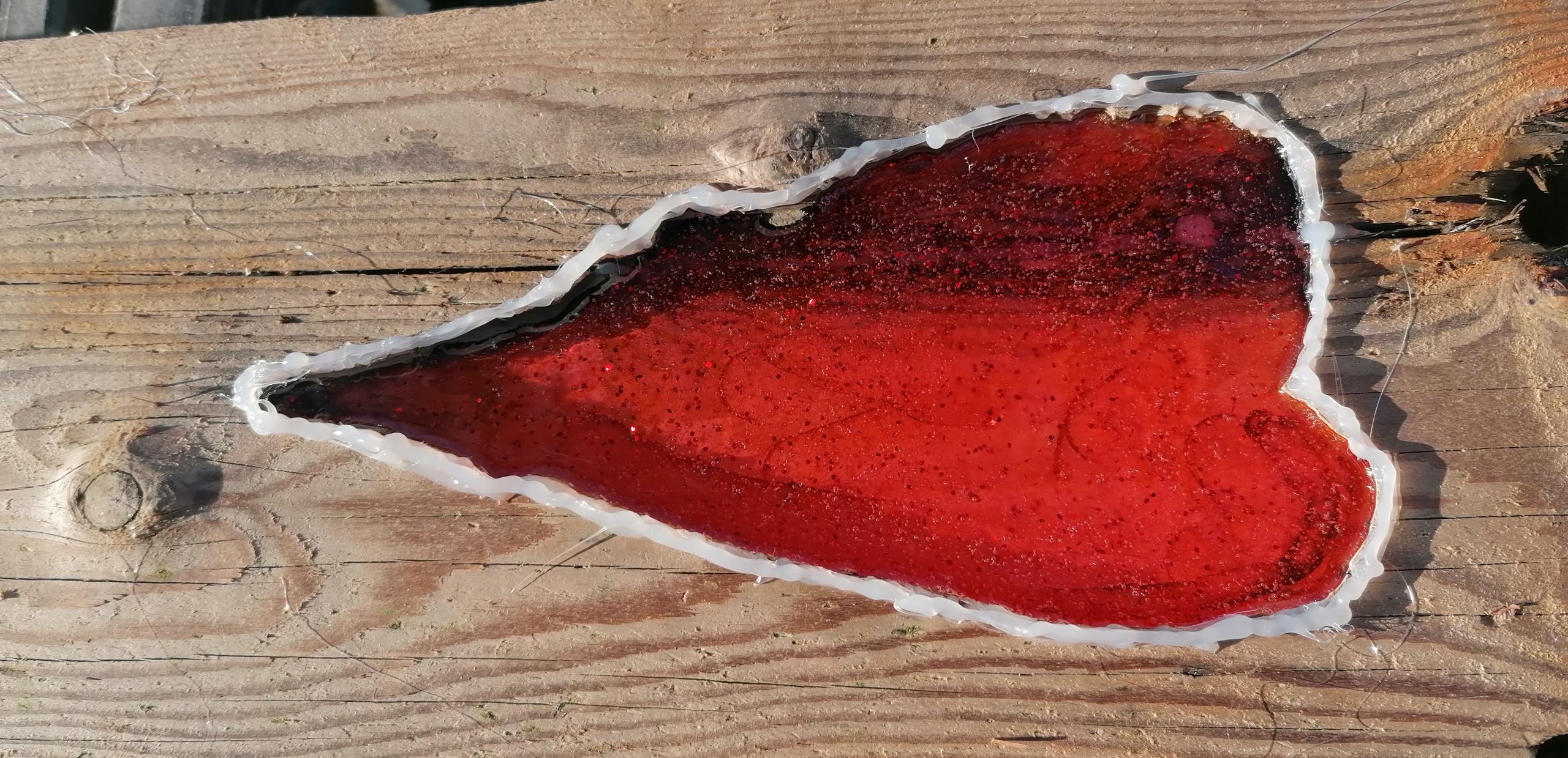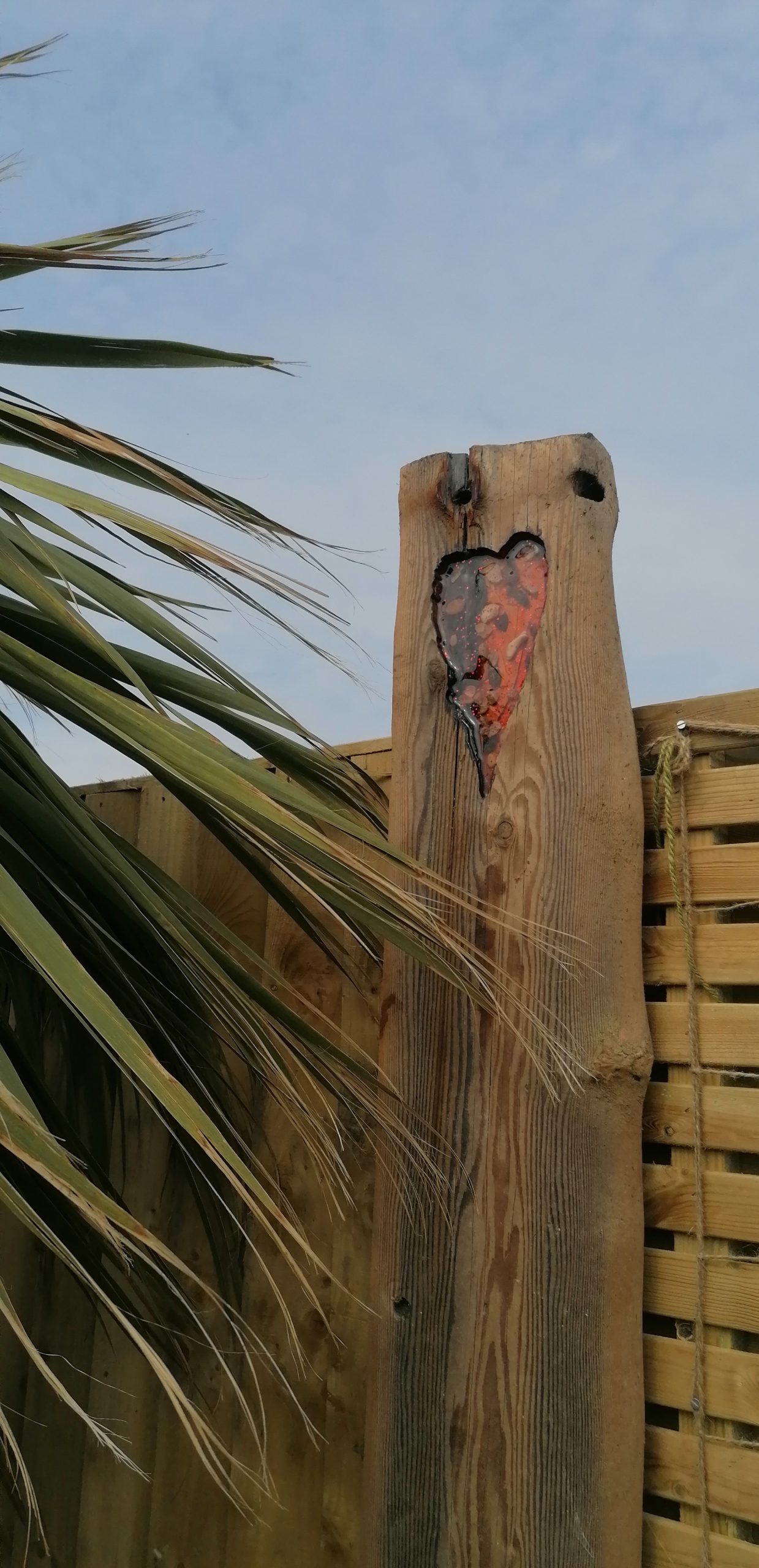 Driftwood piece 200cm high by 25cm wide with carvered resin heart.